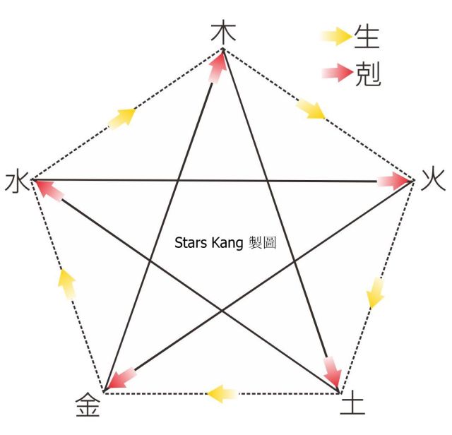 木燃著火。火燼塵土。土固凝金(礦)。金熔化水(液) 。水潤養木。