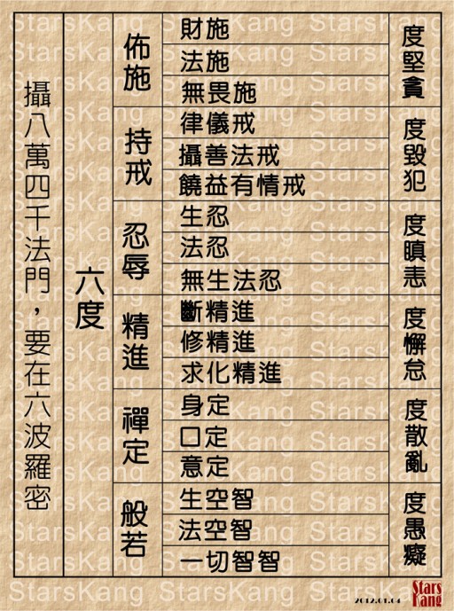 有關六度(六波羅密), 印順導師大和尚於1951年香港講[勝鬘師子吼一乘大方便方廣經]記,有如下的開示: